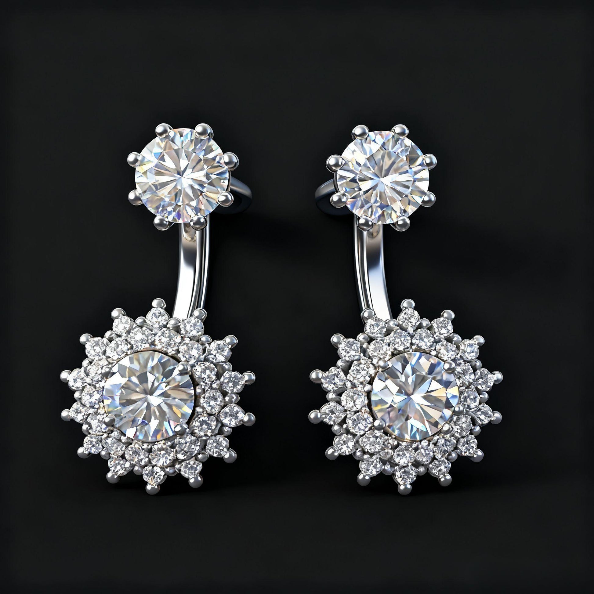 Each earring features two dazzling 1-carat moissanite diamonds, crafted in a layered floral design that blooms with brilliance. The double halo structure catches every glimmer, creating a luminous statement that feels both bold and sophisticated.