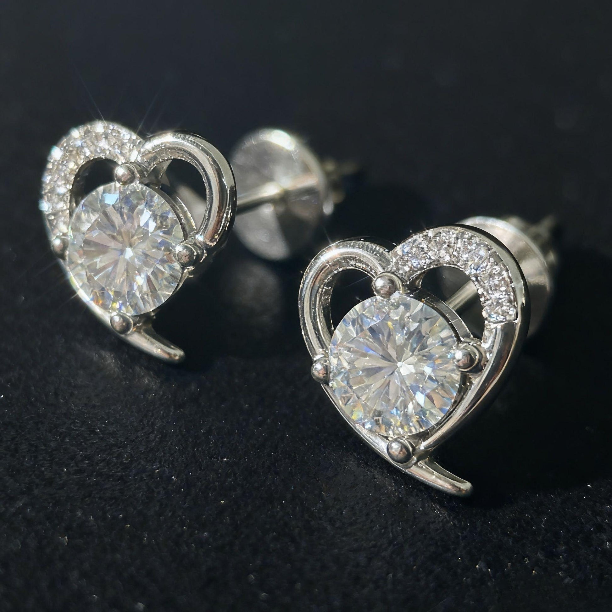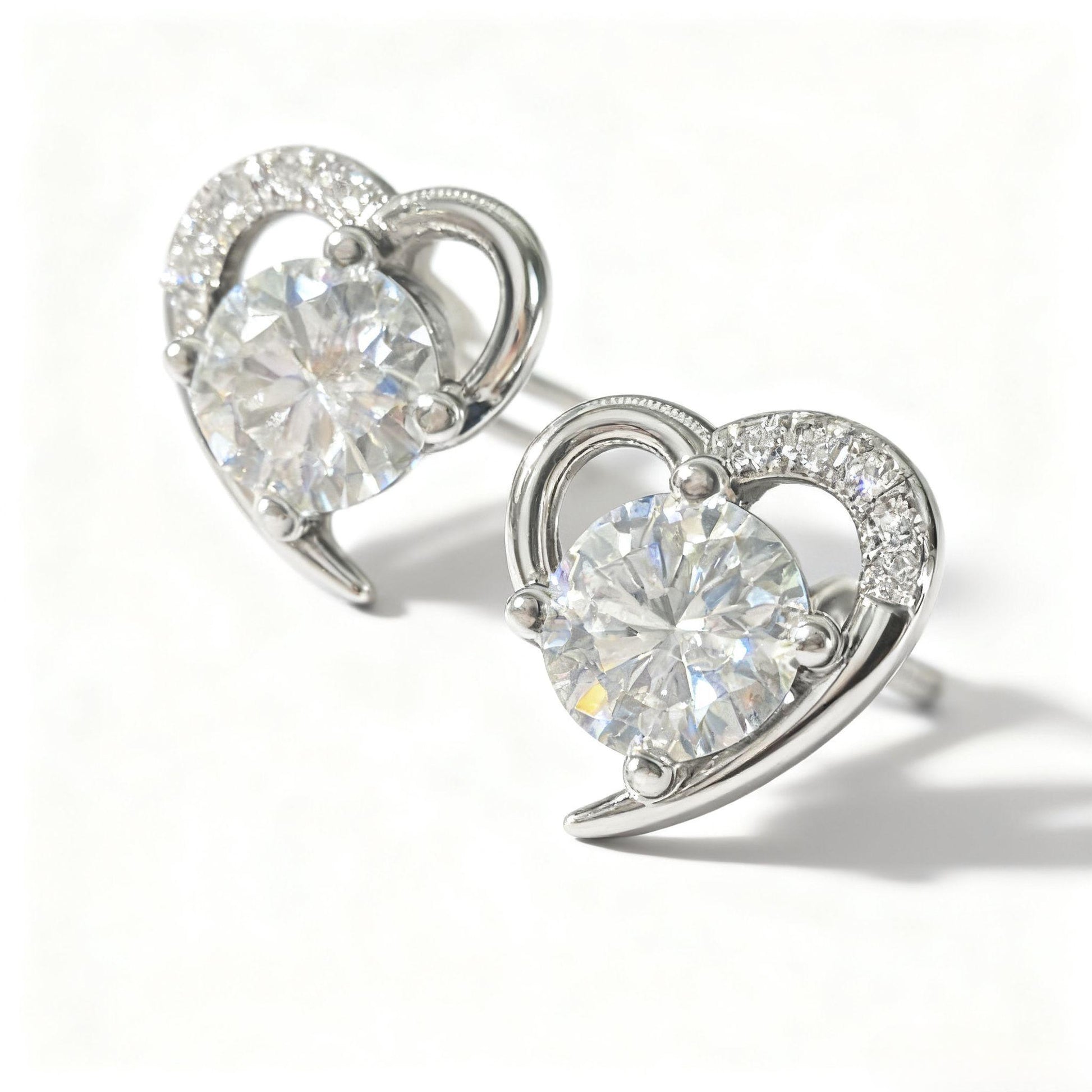 The ER17 Moissanite Diamond Earrings capture the beauty of love in every sparkle. Each earring features a 1-carat moissanite diamond delicately set within a graceful heart-shaped frame — a timeless symbol of affection and brilliance.