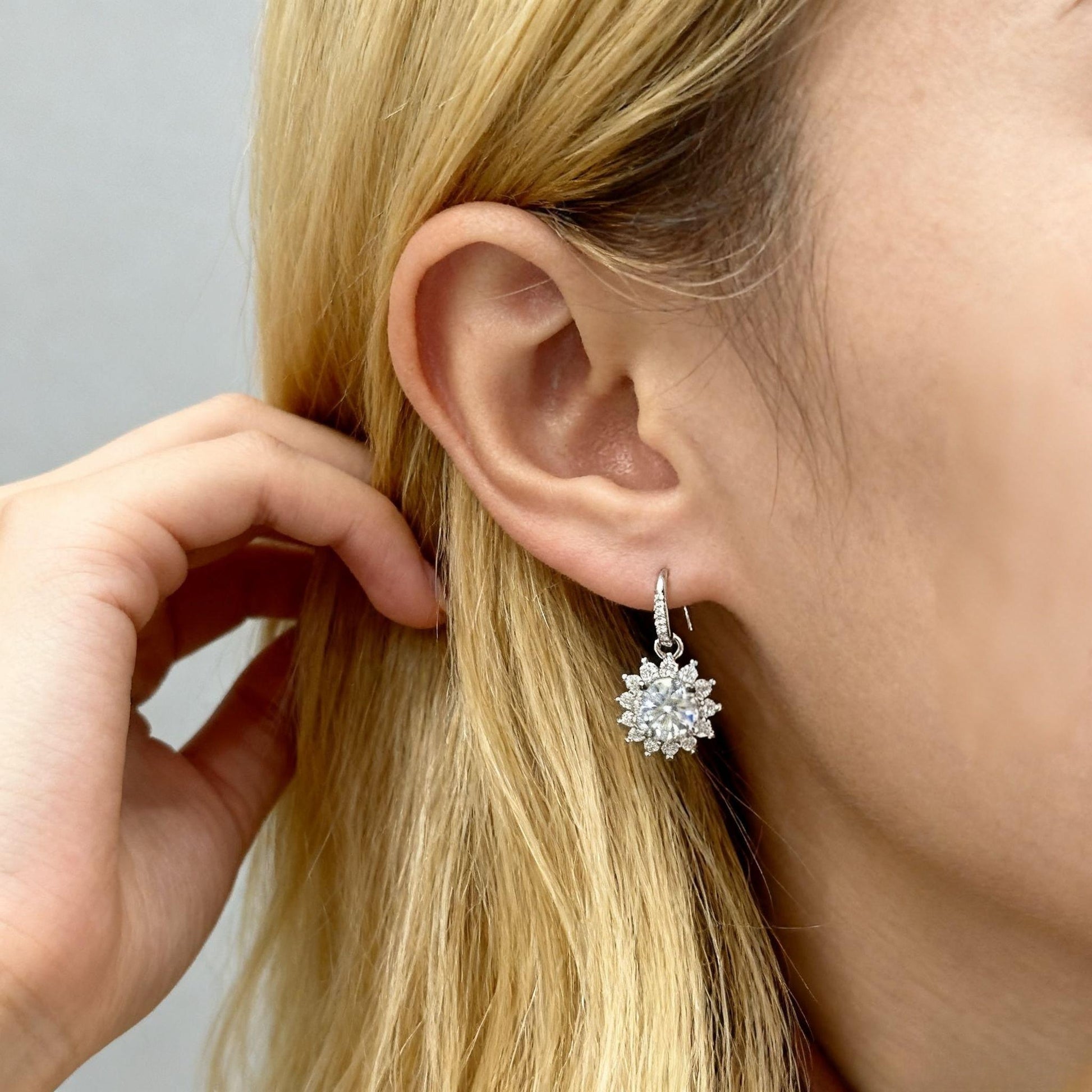 The ER46 Moissanite Diamond Earrings capture the magic of winter in a timeless snowflake design. Each earring features a 1-carat moissanite diamond, surrounded by an intricate halo of smaller stones that reflect light from every angle — creating a radiant, frosty brilliance that never fades.