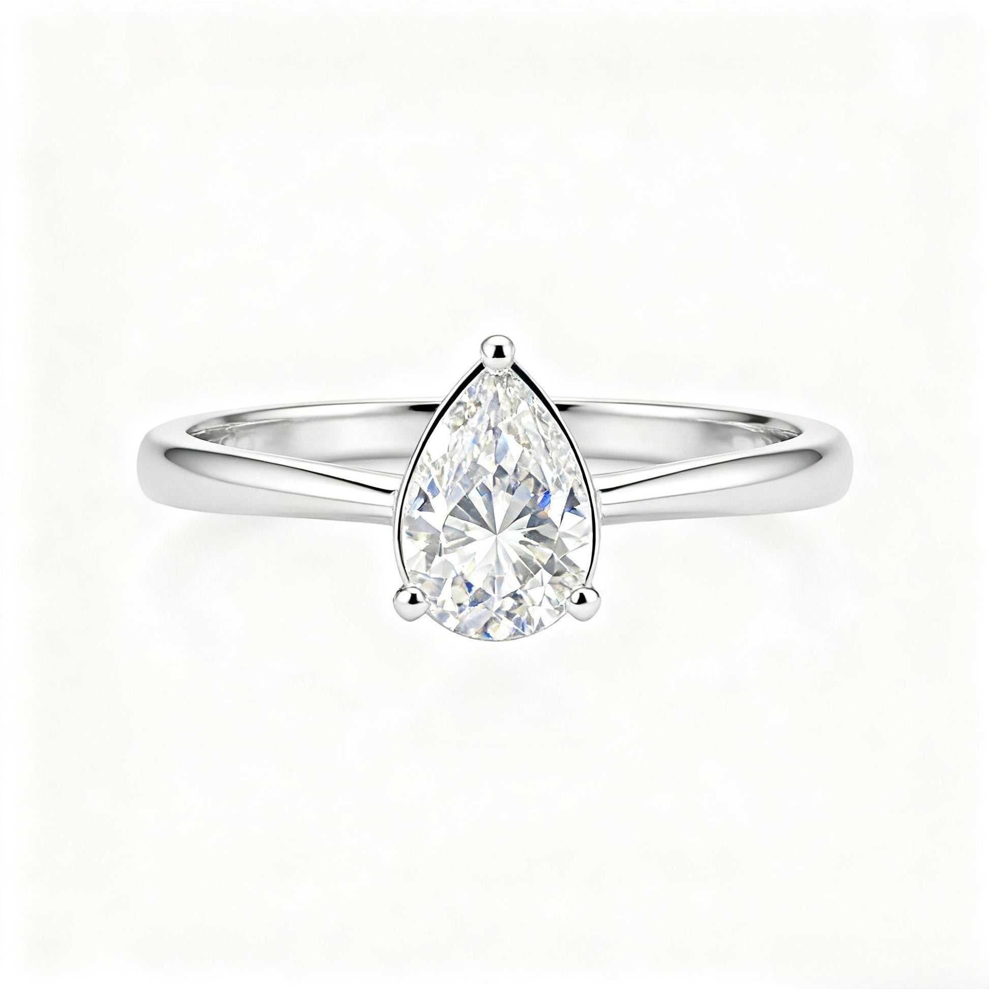The JZ32 Moissanite Ring features a captivating 0.8CT pear-cut Moissanite that symbolizes tears of joy and timeless love.