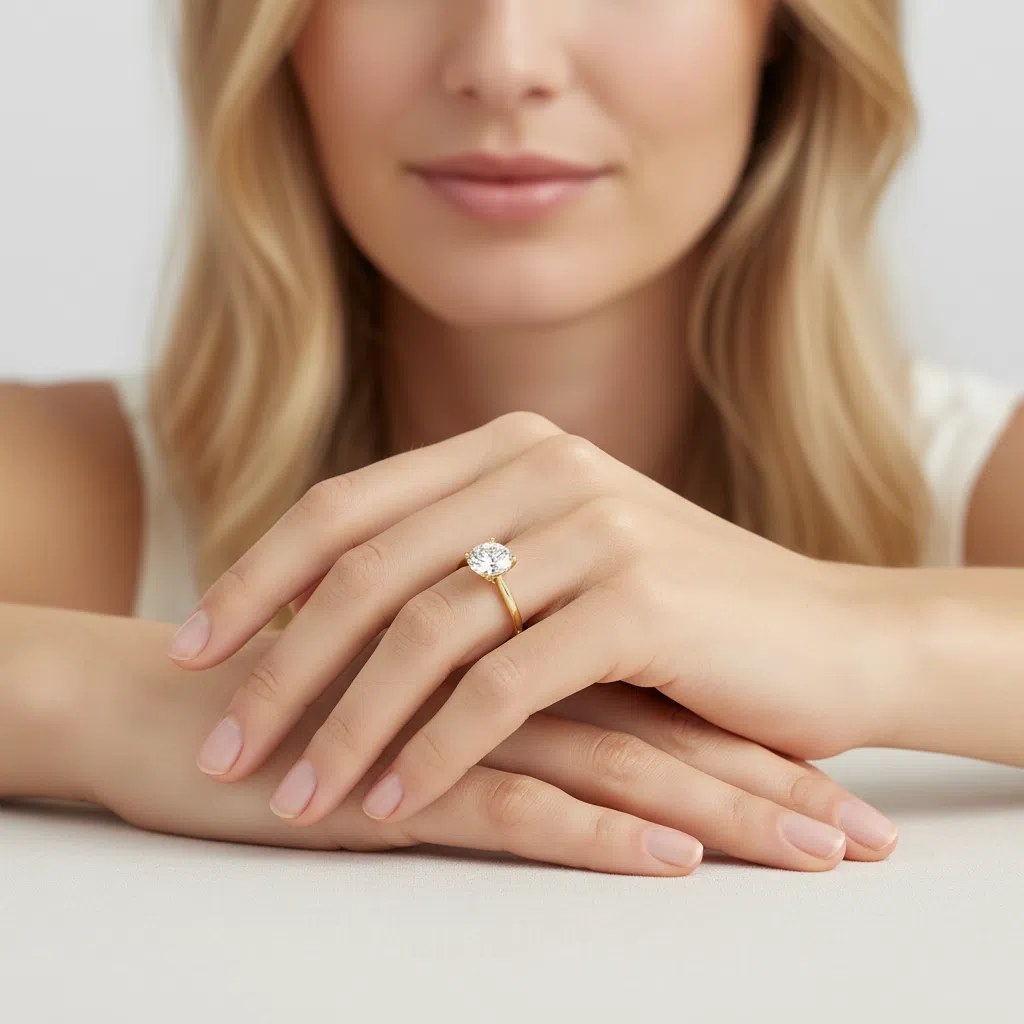 Featuring a 1CT round-cut Moissanite diamond set on a sleek gold S925 sterling silver band, this ring radiates warmth, confidence, and quiet luxury.