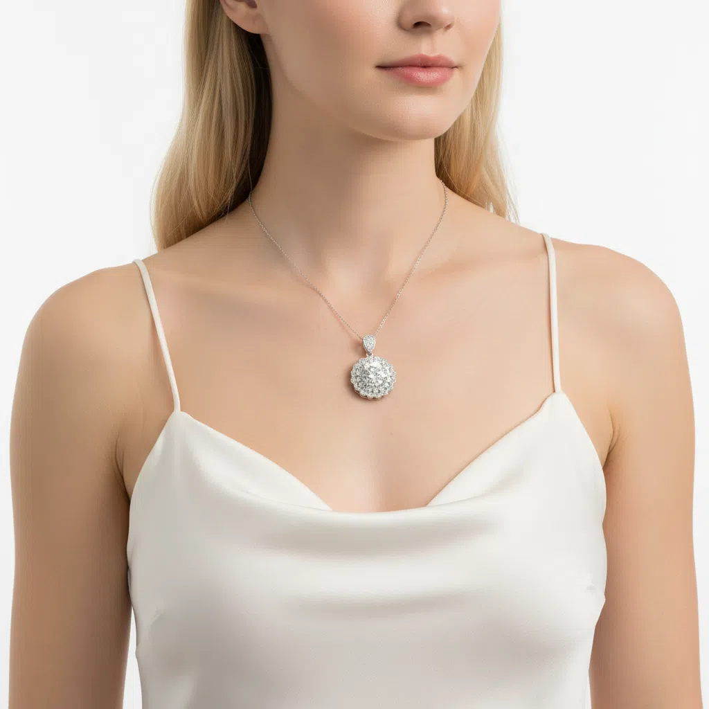 The XL58 5CT Moissanite Diamond Necklace is designed to make a statement. Featuring a stunning 5-carat moissanite center stone surrounded by a halo of brilliance, this piece radiates confidence and luxury in every sparkle.